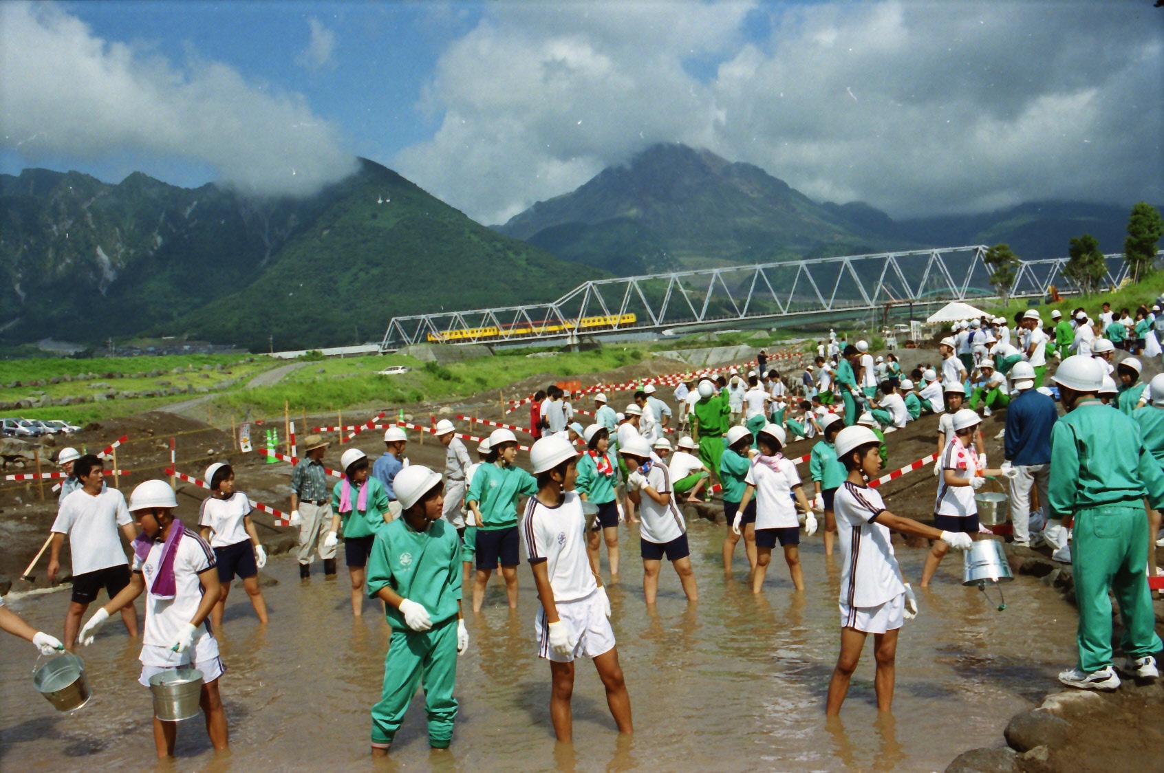 1792年(寛政4年)の噴火活動で出来たといわれる水無川下流の導流堤内から、こんこんと湧き出る湧水を「われん川」といいます。1990年代の雲仙・普賢岳噴火災害以前は、周辺の人々の飲用や洗濯用などの生活用水として利用され、地域住民の手で管理保全が行われていましたが、1991年(平成3年)6月に発生した大規模な土石流により吞み込まれてしまいました。しかし、この水源は土石に埋もれることなく奇跡的に残りました。災害後、復興を願う地域住民の熱意により、災害に負けず生き延びた木々を移植し、川や池を整備し、水の流れが蘇りました。ふるさと再生を願う住民の思いがつまった場所です。