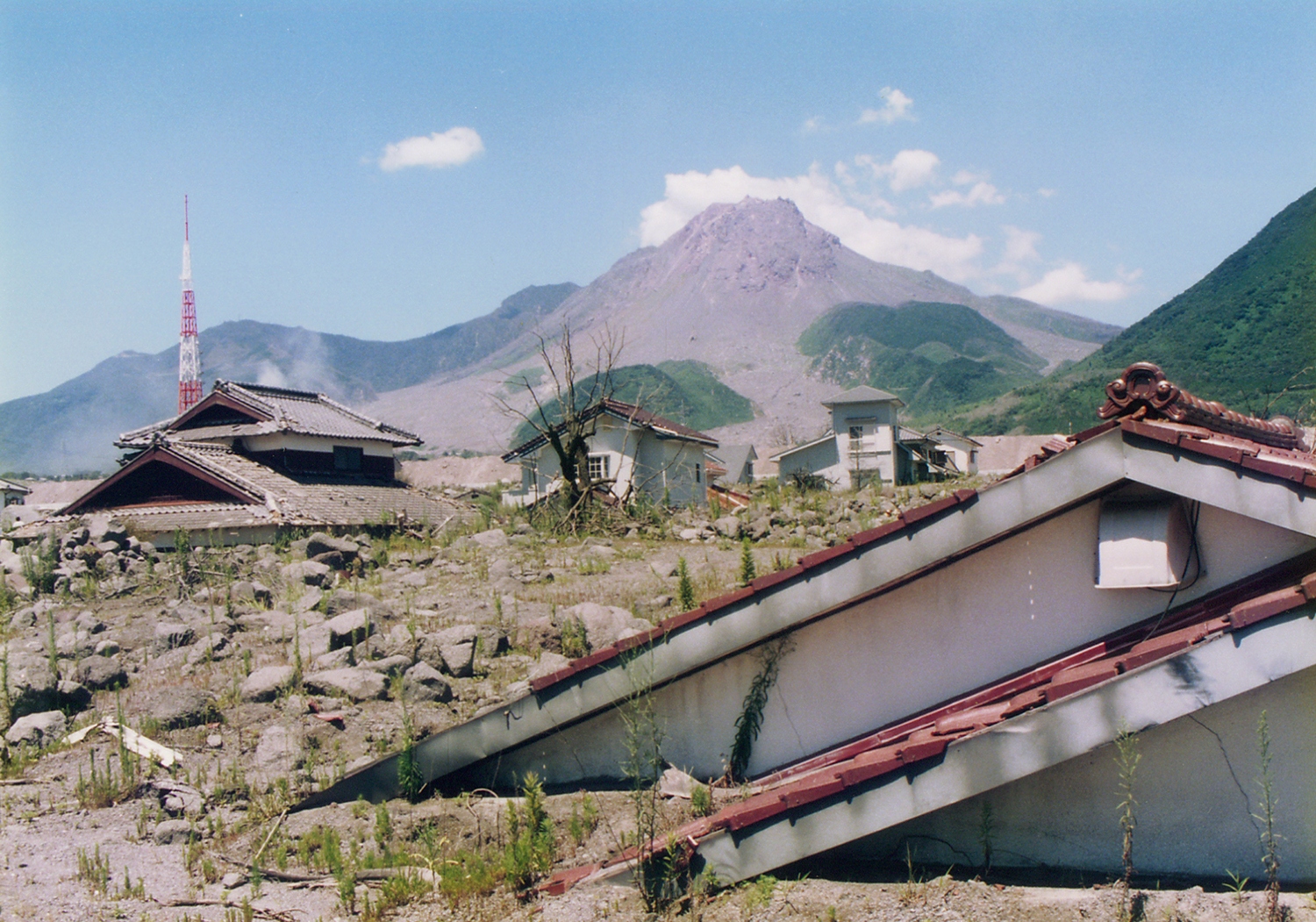 雲仙火山では、人々は噴火のたびに泥流や土石流の被害と闘ってきました。現在は、近代的な砂防工事によって、住民の暮らしが守られています。